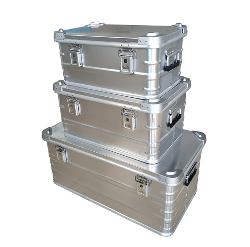 Para este estilo de caja de aluminio, el cuerpo de la caja es completamente de aluminio. Cerradura, manija, bisagra y espárrago son de otros materiales.