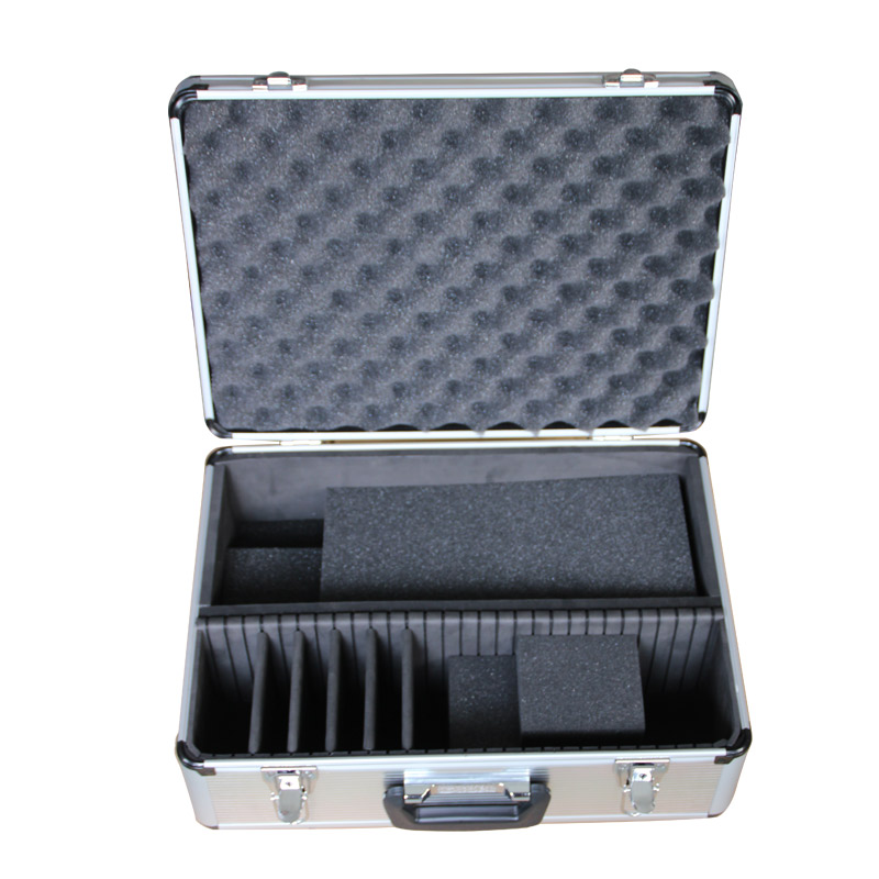 1 En el fondo del caso, hay dos partes. Una parte tiene espuma suave, podríamos poner sus productos en esta parte, la espuma suave podría protegerlos mejor. Otra parte tiene divisores, todos ellos son extraíbles. Podríamos cambiar el volumen de los compartimentos por nosotros mismos.