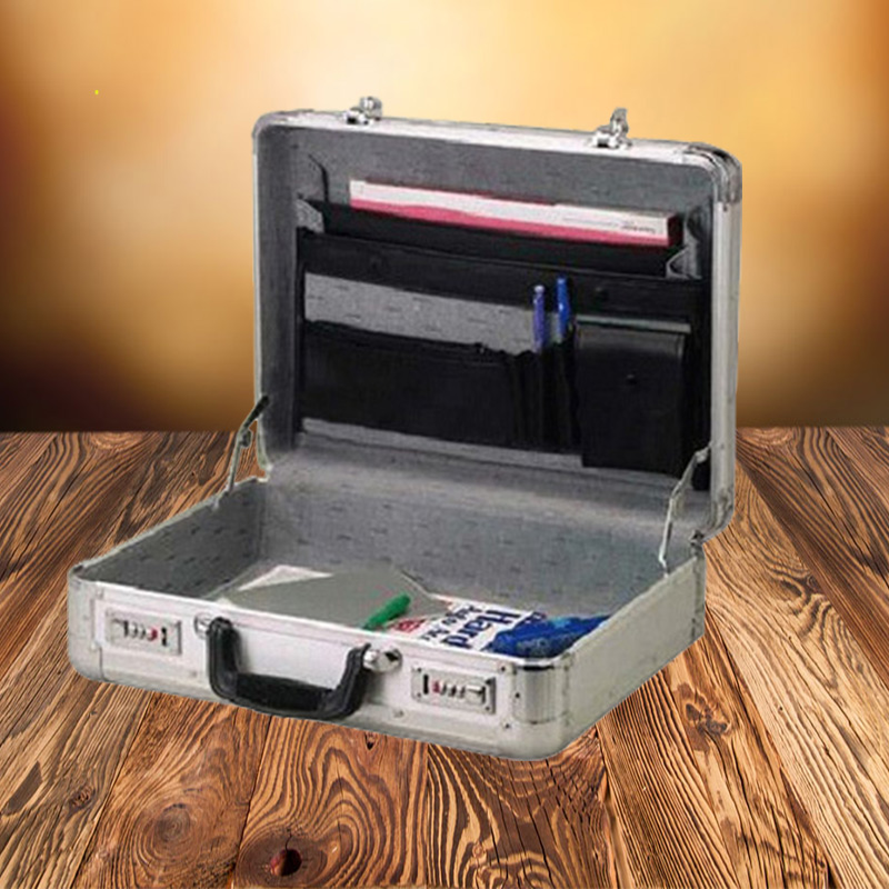 Para esto maletines de aluminioe, está diseñado para gente de negocios. Hay muchos compartimentos pequeños diferentes en la tapa y dos bolsillos grandes, proporcionan suficiente espacio para que coloque el bolígrafo, la tarjeta de presentación, el libro de avisos ... Y los mantenga en orden. La cerradura de combinación podría mantenerte en secreto por ti mismo.
