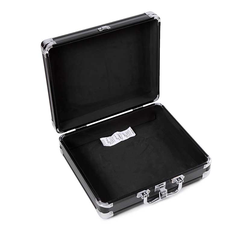 Para este estuche negro de aluminio, es un estuche pequeño de aluminio. Usando el perfil redondo medio. El panel es un panel MDF de espesor 3.5 MM que pegó una lámina de ABS.