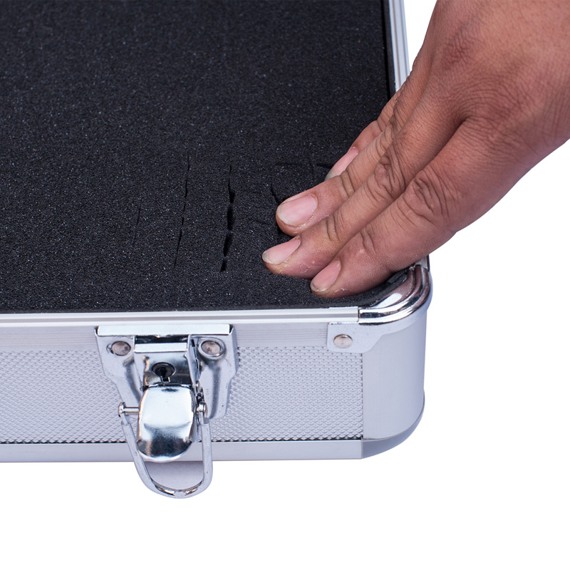Para este caso de aluminio, la espuma de onda en la tapa, es extraíble. Y la espuma cortada en cubos en el fondo de la caja, también es extraíble. Para espuma en cubitos, está hecha del mismo tamaño de espuma pequeña. Si desea colocar sus herramientas, equipos o diferentes estilos de instrumentos en él, puede cambiar sacar un poco de espuma para que se adapte a sus productos. Es fácil y conveniente. Lo más importante es que nos ahorra demasiado.