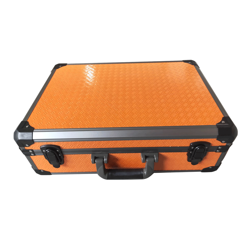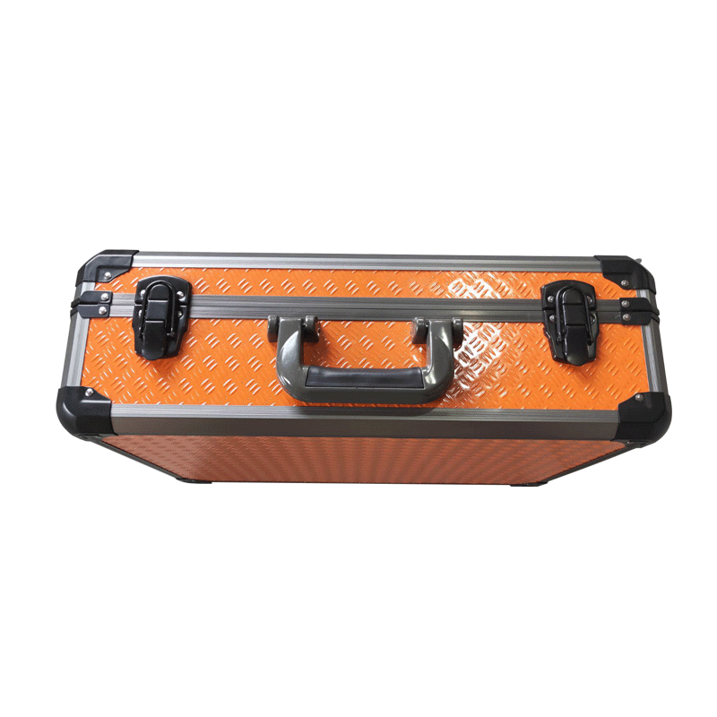 Caja de aluminio con panel naranja y perfil negro