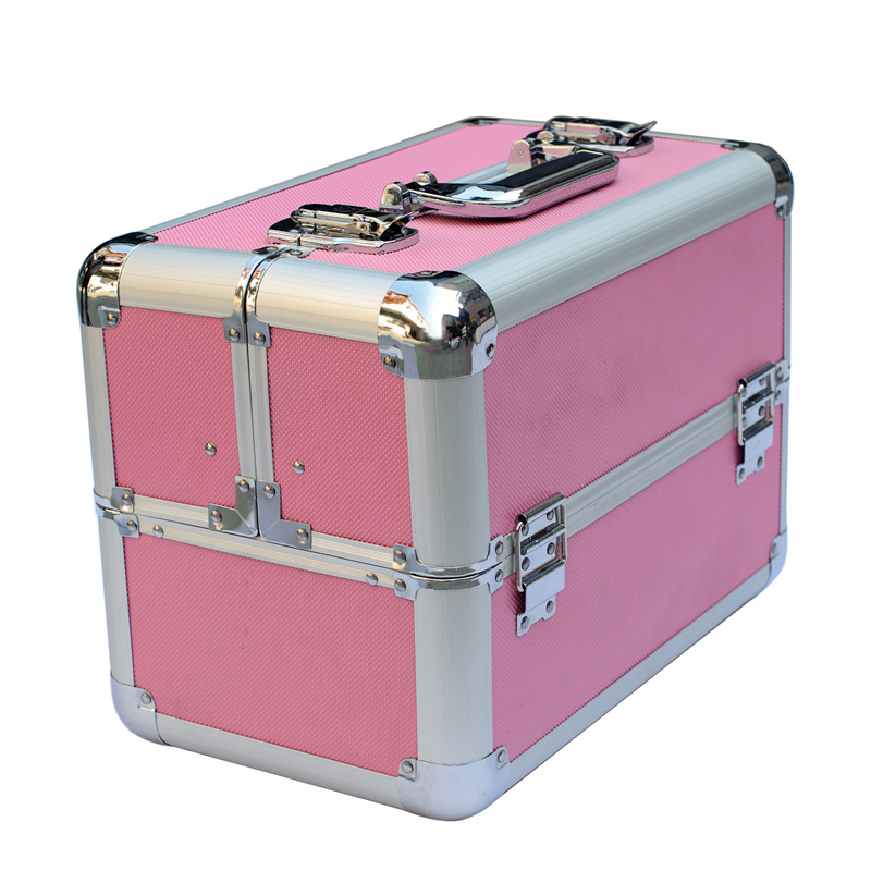 Almacene y organice elementos esenciales de belleza en este elegante rosa caja de marco de aluminio con esquinas de acero reforzado diseñadas con una impresión acolchada única. Los múltiples compartimentos forrados de terciopelo y las bandejas plegables ajustables están diseñados para almacenar maquillaje, herramientas, productos para uñas y más.