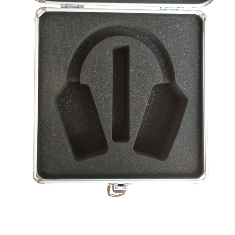 Esta funda de orejeras de aluminio fue diseñada para proteger y transportar las orejeras. El panel de superficie es de cuero, está personalizado. La espuma interna es espuma suave 50KGS. Por lo tanto, es más caro que el estilo habitual. Tiene requisitos de muy alta calidad.