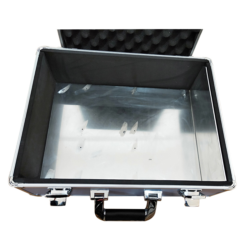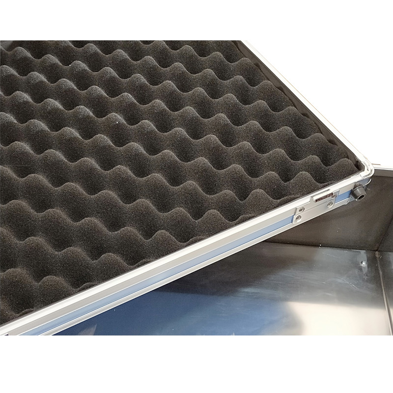 Para este caso de equipos de aluminio, cortamos la placa de aluminio para el cliente. La placa con algunos agujeros, podría ayudar al cliente a arreglar bien su equipo en el caso. Todo el borde de la placa es plano, no es de estilo afilado, no dañará las manos. La placa es extraíble, si el cliente lo necesita, podrían quitársela, solo quitan el tornillo en la parte inferior de la caja, estará bien. Podría ayudar al cliente a reparar productos y no dañará la carcasa de aluminio.