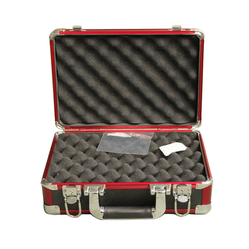 Por este corto caja de arma, el perfil de aluminio es rojo y el panel es negro. La esquina de metal podría proteger mejor la carcasa.