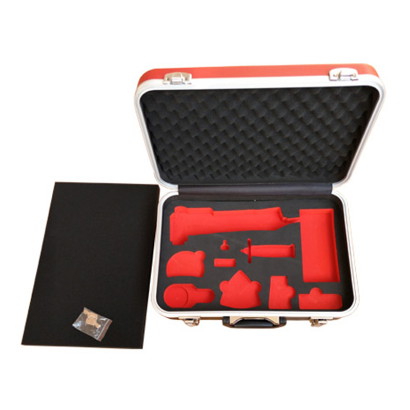 En la parte inferior, colocamos espuma personalizada para adaptarse mejor a los equipos o herramientas. Cualquier forma podría hacer tus dibujos. Por lo tanto, podría cargar demasiados productos diferentes que deben protegerse o transportarse.