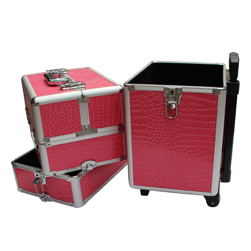 La parte media es la más pequeña. La parte superior es un estuche cosmético de doble puerta habitual. Todos ellos, podemos hacer lo que necesites. Entonces, si te gusta este estilo de estuche cosmético profesional, no dudes en contactarnos.
