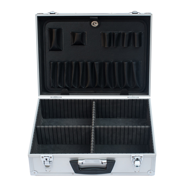 La esquina de metal podría proteger la carcasa mejor que la esquina de ABS. Los divisores removibles podrían cambiar la sala de departamentos del caso. Para piezas extraíbles, podríamos moverlas, luego cortar la espuma para que se ajuste mejor a la carcasa. Por supuesto, también tenemos espuma en cubitos.
